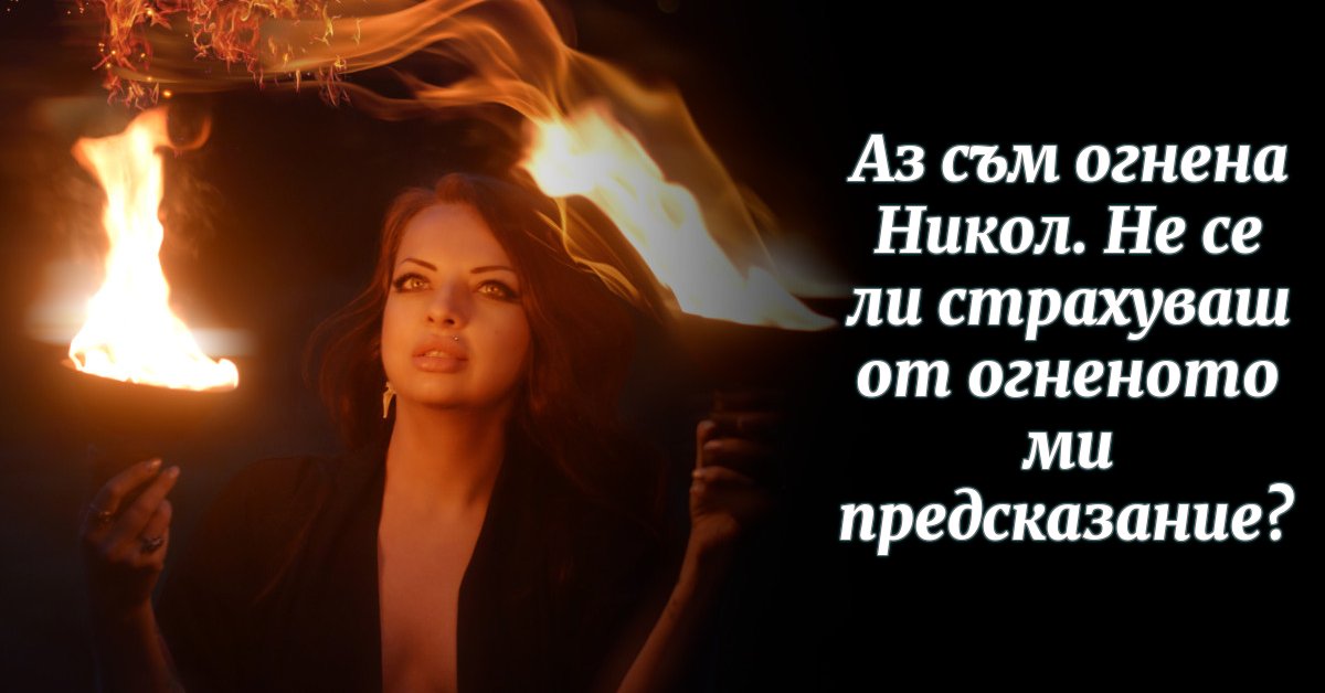Аз съм огнена Никол. Не се ли страхуваш от огненото ми предсказание?