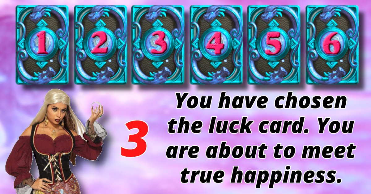 You have chosen the luck card. You are about to meet true happiness.