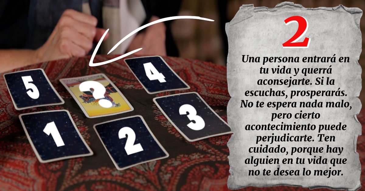 El adivino señala una carta que le dice lo que sucede a continuación.