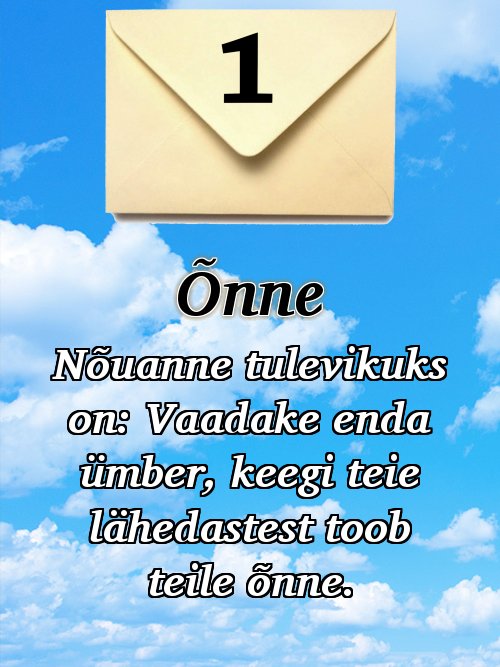 Sa näed mitmeid kaarte, mis ütlevad sulle, kuidas su saatus jätkub.