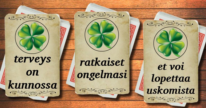 Ennustaja vetää pakasta kortin juuri sinulle, joka kertoo paljon tulevasta kohtalostasi.