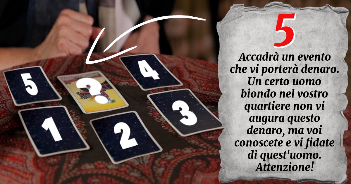 Accadrà un evento che vi porterà denaro. Un certo uomo biondo nel vostro quartiere non vi augura questo denaro, ma voi conoscete e vi fidate di quest'uomo. Attenzione!