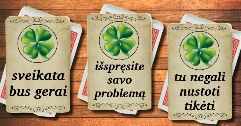 Kurią iš 3 kortelių pasirinksite? Jis parodys, ar jums pasiseks, ar ne.
