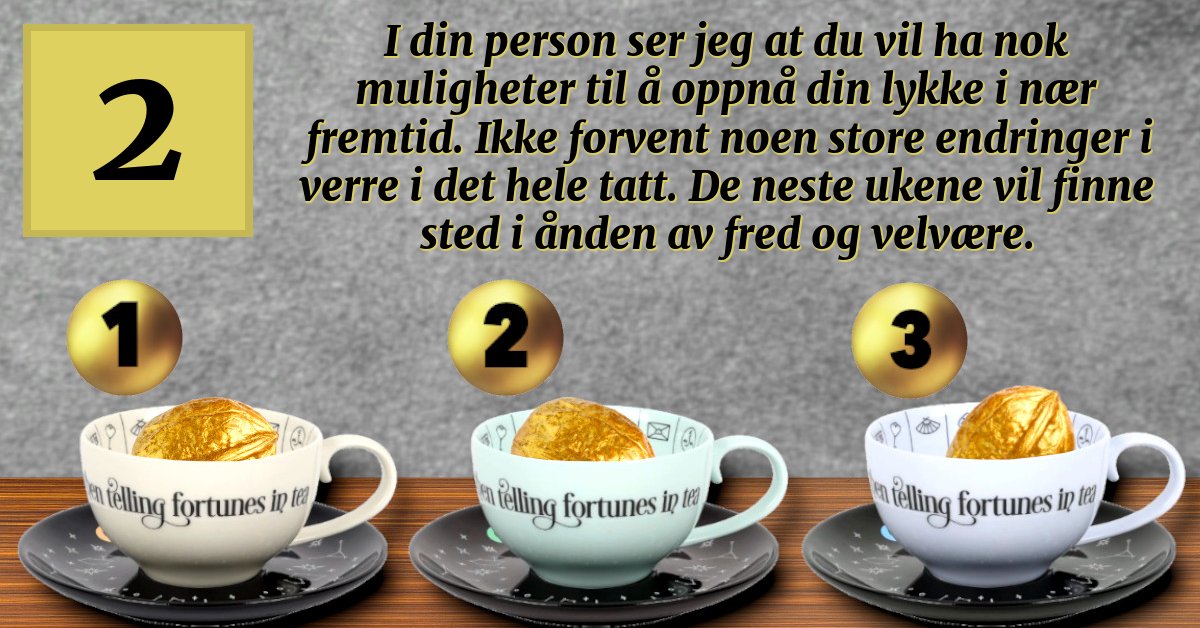 I hver kopp er en gylden valnøtt, og du liker bare en av dem nøye!