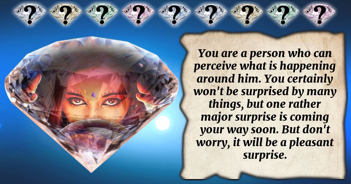 You are a person who can perceive what is happening around him. You certainly won't be surprised by many things, but one rather major surprise is coming your way soon. But don't worry, it will be a pleasant surprise.